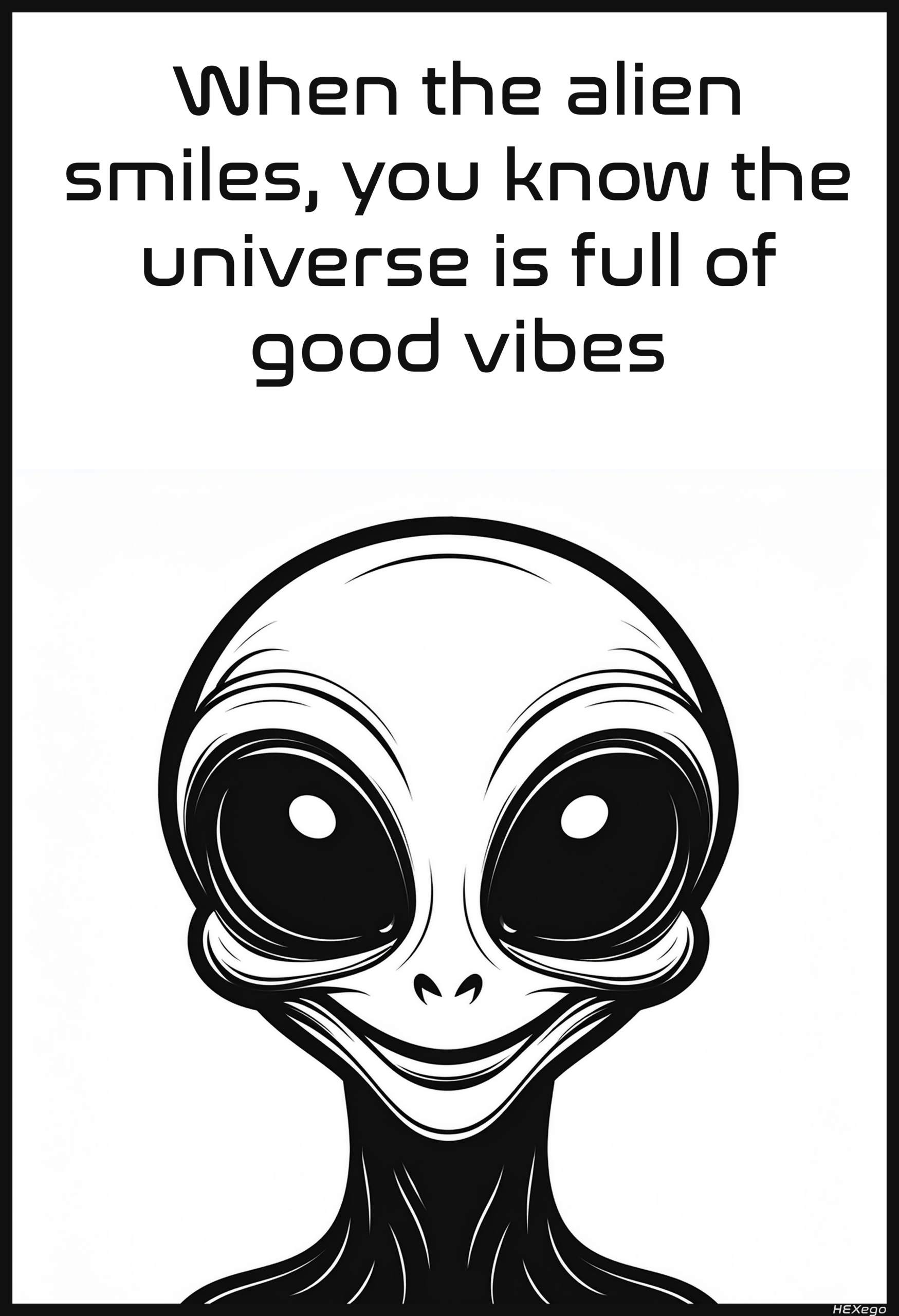 Un alien au sourire lumineux diffuse des ondes positives qui illuminent l’espace autour de lui.