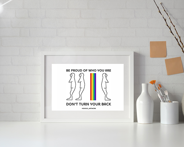 Sois fière de qui tu es, ne leur tourne pas le dos à celles et ceux qui font preuve d’homophobie (la majorité représentée par les deux personnages de gauche)